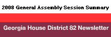 Below, you can click on links to two of my 2008 newsletters: the summary of the 2008 Session and the summary of action taken on reforming DeKalb County's government. You also can click on the newsletter image to read my summary of the 2007 Session.
